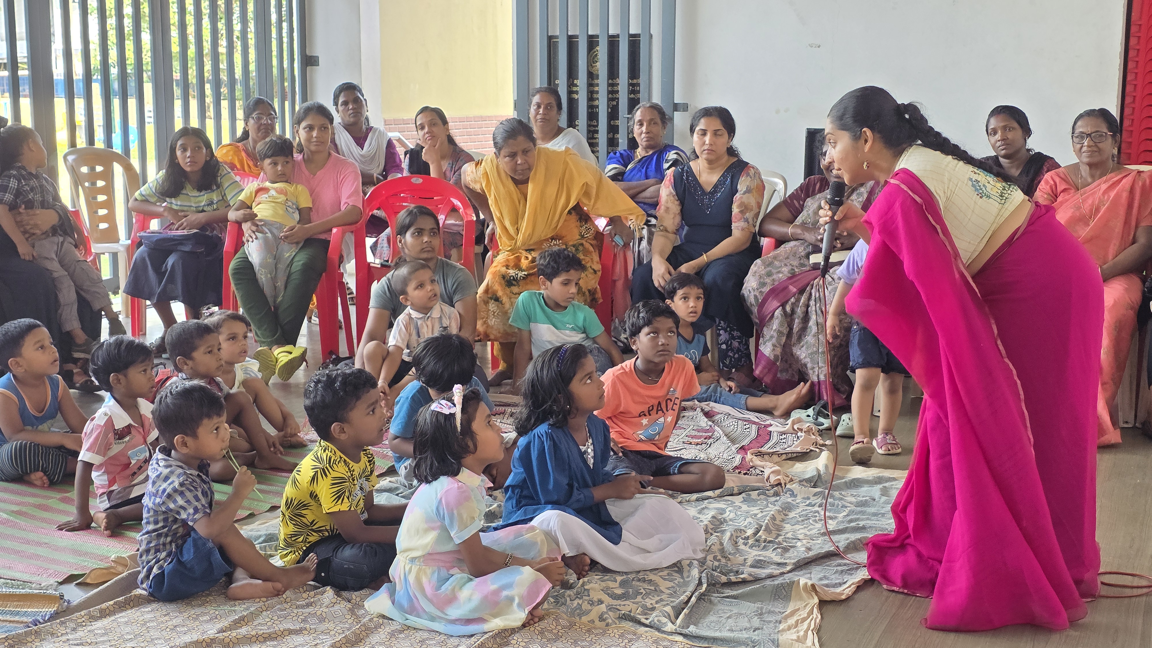 P.J.Antony cultural ground, a 5000 sq.m underutilised public space housing 2 Anganwadis and a dementia care centre, wastransformed to create a play space and outdoor space for caregivers encouraging rest and social interaction. The site was also activated throughregular programming of activities such as storytelling and interactive sessions for caregivers further enhancing the usage of the space by youngchildren and caregivers.
